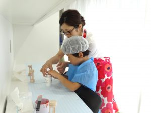 模型作りでは自分で好きな歯型を選んで、自分で材料を混ぜてスイッチポン!