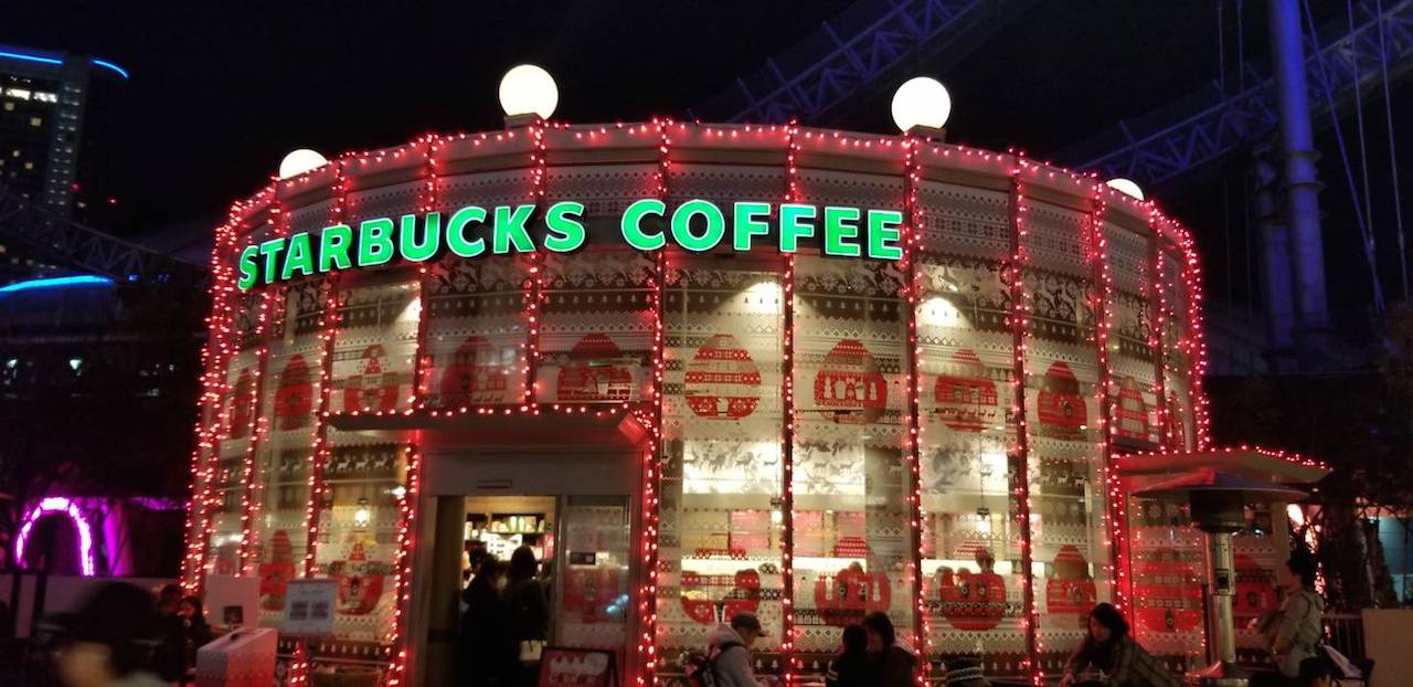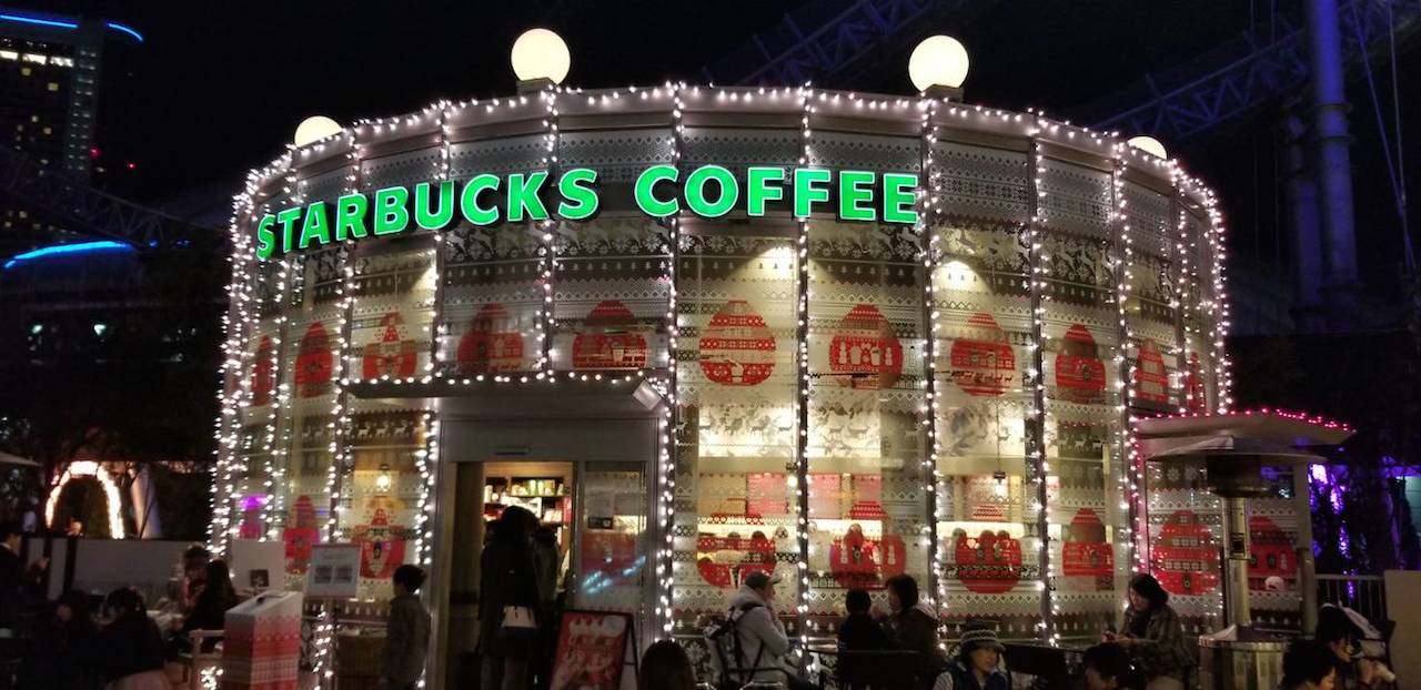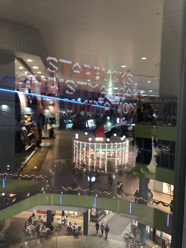 ラクーア内のスタバもライトアップされていました!