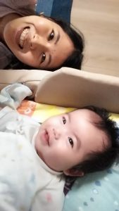 最近はミルクを飲むときに、哺乳瓶と同時に自分の親指も口に入れて、