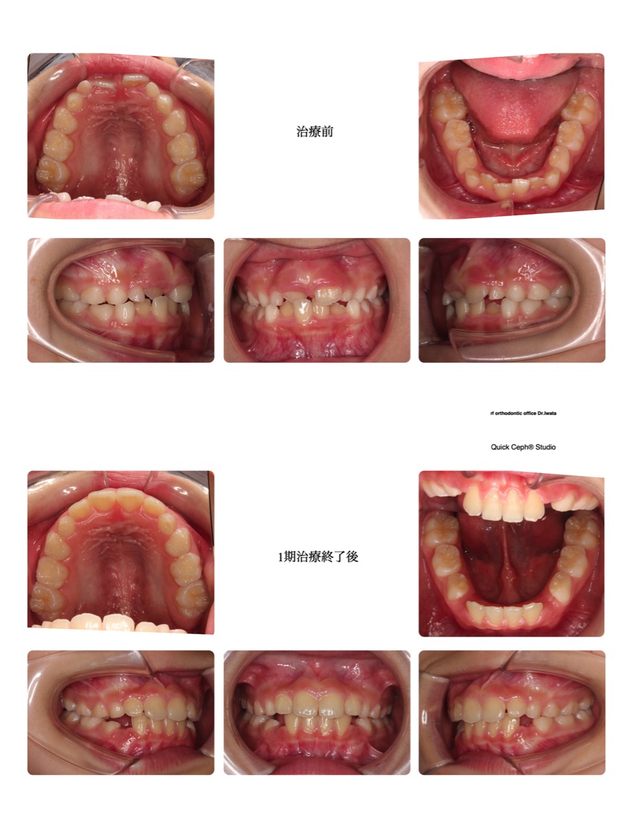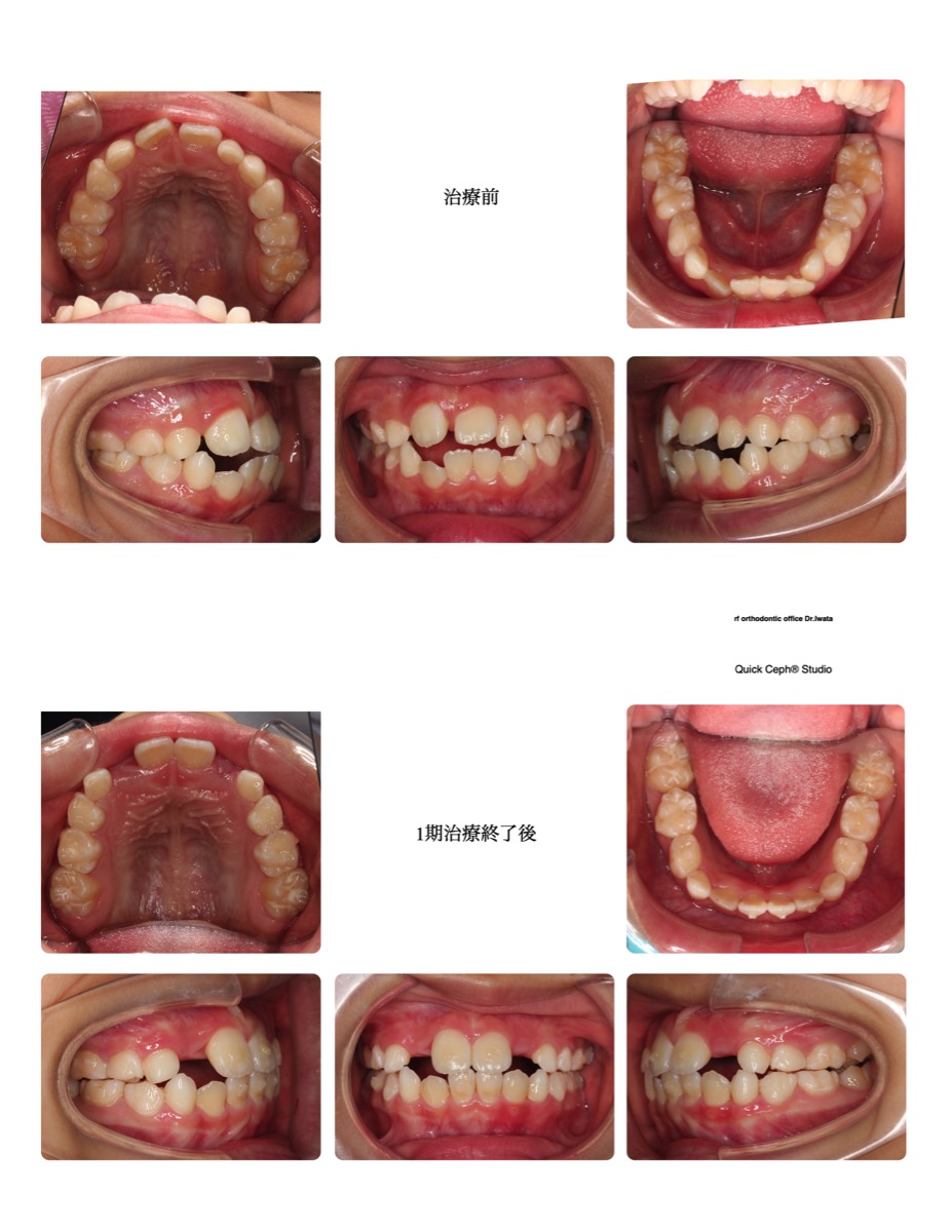全体の流れは従来の矯正治療と同様、乳歯と永久歯が混在する時期(小学校低学年)の「第1期治療」と、永久歯が生え揃う時期(小学校高学年~中学校以降)の「第2期治療」に分かれています。