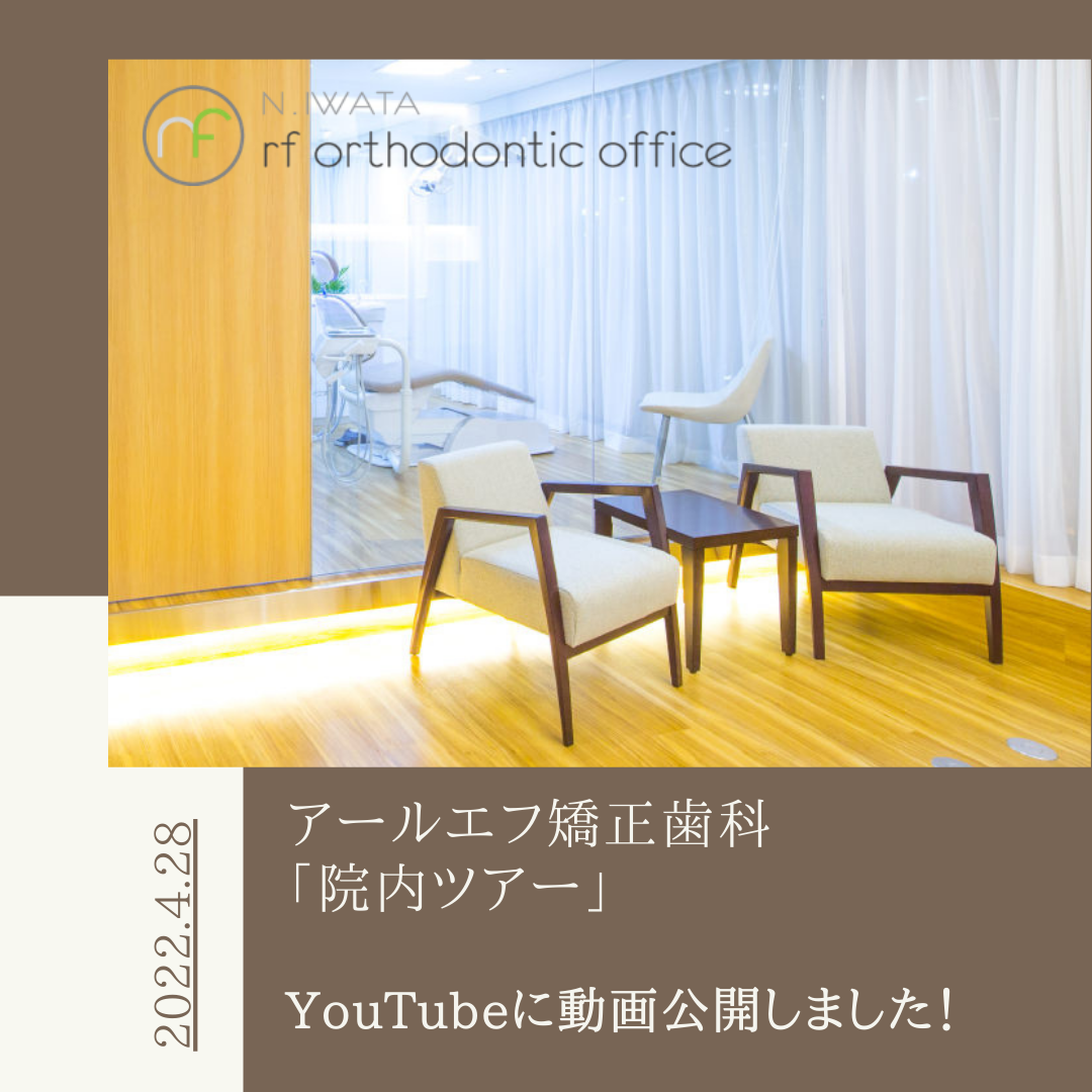 2022.05.14クリニックからのご案内 皆様、こんにちは。 先日、久しぶりにYouTubeにてアールエフ矯正歯科「院内ツアー」を公開いたしました! 当院で矯正治療をご検討中の皆様へ『院内の雰囲気を少しでもお伝えできれば』という思いで作成いたしました。 身近に感じて頂き、行ってみようかなと一歩を踏み出すきっかけになれば幸いです。 当院に通院中の患者さまにもぜひ一度、ご覧いただけますととても嬉しいです! 院内ツアーはこちらからご覧いただけます。→アールエフ矯正歯科『院内ツアー』YouTube 近日中に、「初診矯正相談のご紹介」動画もYouTubeにて公開を予定しております! 公開しましたら、またこちらのブログにてお知らせ致しますのでぜひ、お楽しみにお待ちください☆ 現在矯正治療中の方、そして矯正治療を検討されている方にとって 安心して受診していただけるようさまざまな情報を発信中です。詳しくは【 当院 Instagram & YouTube 】を是非参考にご覧ください! ■ 当院のYouTubeはこちらから■ 当院のInstagramはこちらから■ 当院スタッフのInstagramはこちらから