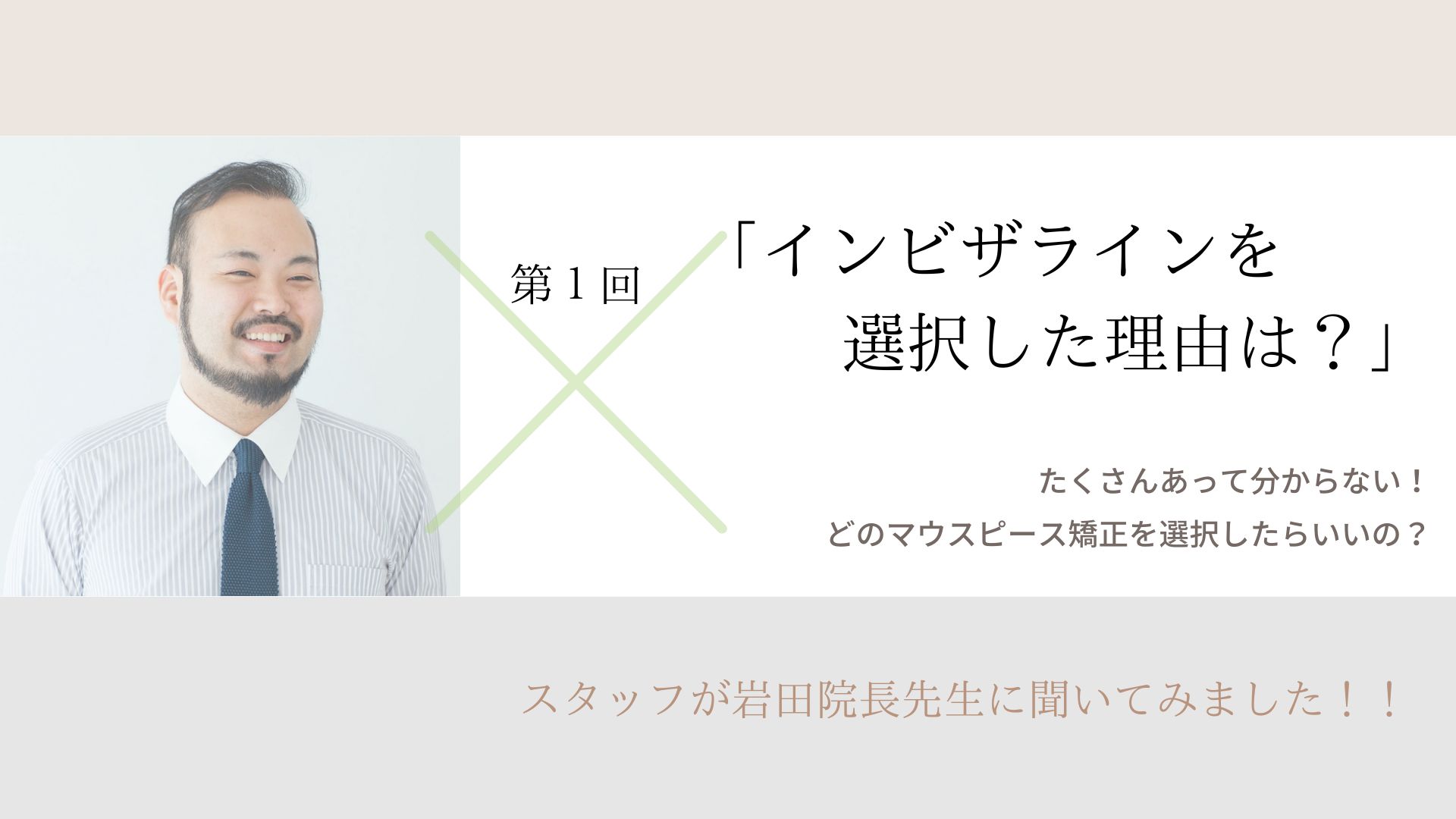 2022.09.03クリニックからのご案内 皆様、こんにちは。 9月に入りましたね! 8月は猛暑日やゲリラ豪雨が多く、なかなか外で運動をする機会も少なくなってしまい私も子供たちも運動不足です・・。 このまま食欲の秋が訪れると心配ですね。笑 さて、今回公開した動画は新シリーズとなります!! 矯正に関する疑問をスタッフが先生に質問しさまざまな話を聞かせてもらう内容となっています。 HPなどでは得られない情報も聞かせてもらえるかもしれませんね! 第一回目、初めての質問は・・ 「いろいろなマウスピース矯正がある中で、インビザラインに決めたのはなぜですか?」 当院で取り扱っているものはマウスピース型矯正装置「インビザライン」ですが、 現在、国内でも10を超えるブランドからマウスピース矯正が出ています。 「マウスピース矯正をやりたいけど、どれが一番いいの?」とお悩みの方も多いのではないのでしょうか? マウスピース型矯正装置「インビザライン」の選択理由や特徴などそして、どの様にマウスピースの選択をすべきかのポイントも先生にお話してもらいました。 動画はこちらからご覧いただけます。→「インビザラインを選択した理由は?」 今後もどんどん、矯正に関する「疑問」を先生に聞いてみたいと思いますので、今後の動画もぜひお楽しみにしてください♪ 現在矯正治療中の方、そして矯正治療を検討されている方にとって 安心して受診していただけるようさまざまな情報を発信中です。詳しくは【 当院 Instagram & YouTube 】を是非参考にご覧ください! ■ 当院のYouTubeはこちらから■ 当院のInstagramはこちらから■ 当院スタッフのInstagramはこちらから