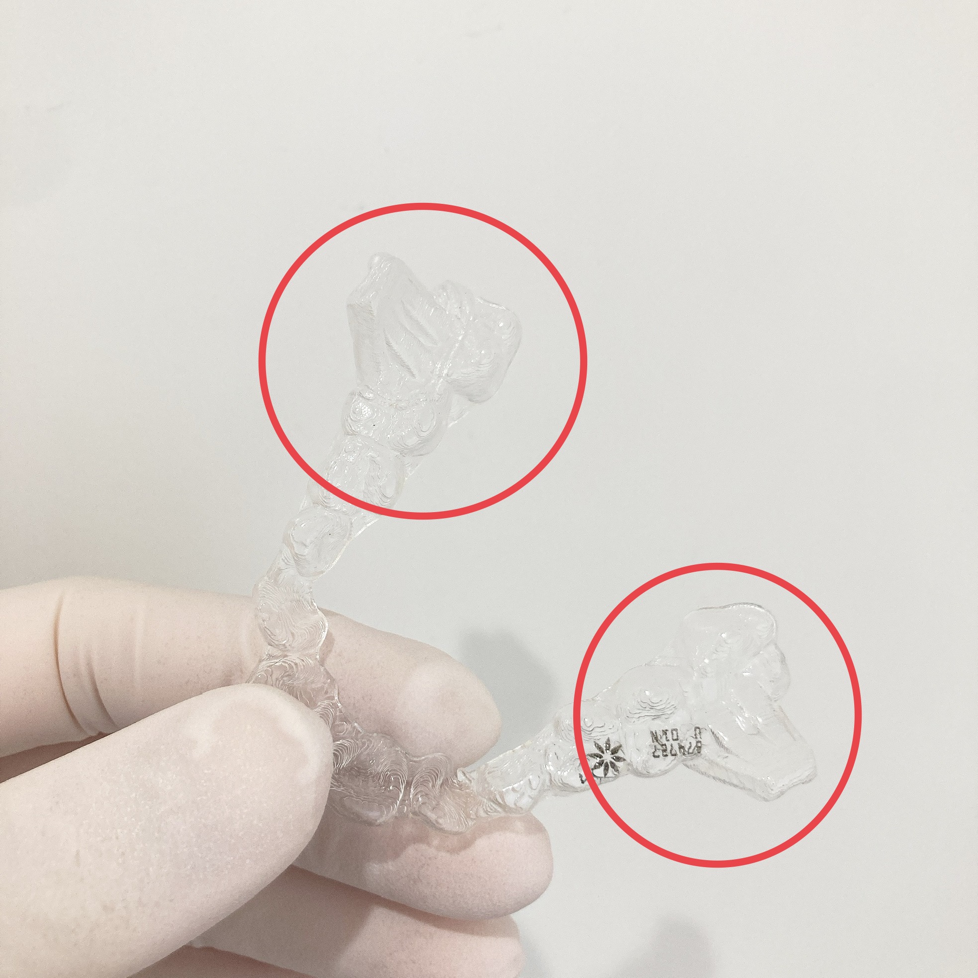 2022.10.06矯正治療についてみなさんこんにちは。抜けるような青空の心地よい季節となりましたね♪今日はこちらの珍しいマウスピースをご紹介しようと思います⭐︎ 奥歯の横に出っ張りが付いていて、(プレシジョンウイング)この場所で噛み込むことで、下顎を前の方に誘導するというものです。 一般的に言われる「出っ歯」(上顎前突)、上顎が下顎より前に出ている思春期の成長過程に使います。このプレシジョンウイングを使用し、積極的な下顎の発育を促します。 どのように動いていくかというと…①スタート時は上顎の奥歯が下顎の奥歯より手前にあります。②③④ 徐々に下顎を前方に促すことにより④は上顎の奥歯が下顎の奥歯より後ろになりました。→動いている様子の動画です。 下記でもう一度①と④を比べてみます。① ④上顎の奥歯が下顎の奥歯より後ろになり、前歯がきれいに揃いました⭐︎ このマウスピースを使っているお子さんに使い心地を聞いてみたところ、特に違和感なく使えているとのことでした♪※装着したときの注意点ですが、横方向に顎を動かすとウイングがたわんでしまうので無理に横方向には動かさないように気をつけましょう。こどものマウスピース矯正についてはこちらにもございますので参考になさってください.。.:*☆【更新】こどものマウスピース型矯正治療「インビザライン ファースト」 現在矯正治療中の方、そして矯正治療を検討されている方にとって 安心して受診していただけるようさまざまな情報を発信中です。詳しくは【 当院 Instagram & YouTube 】を是非参考にご覧ください! ■ 当院のYouTubeはこちらから■ 当院のInstagramはこちらから■ 当院スタッフのInstagramはこちらから