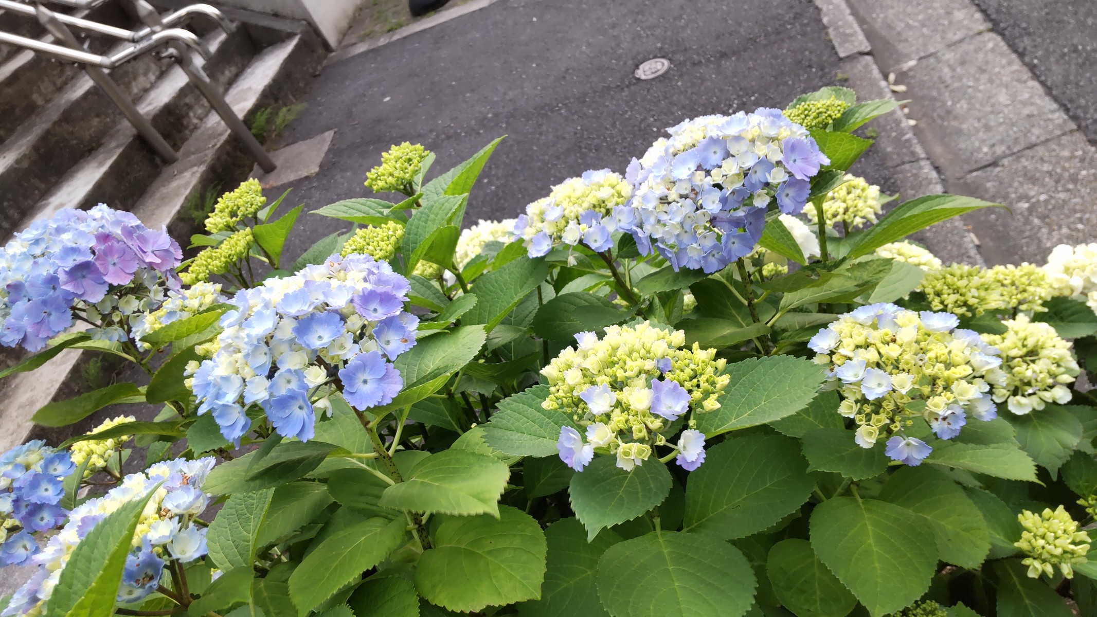 仕事の帰り道に紫陽花を見つけ、