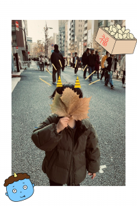 大きな落ち葉を見つけたそうです。