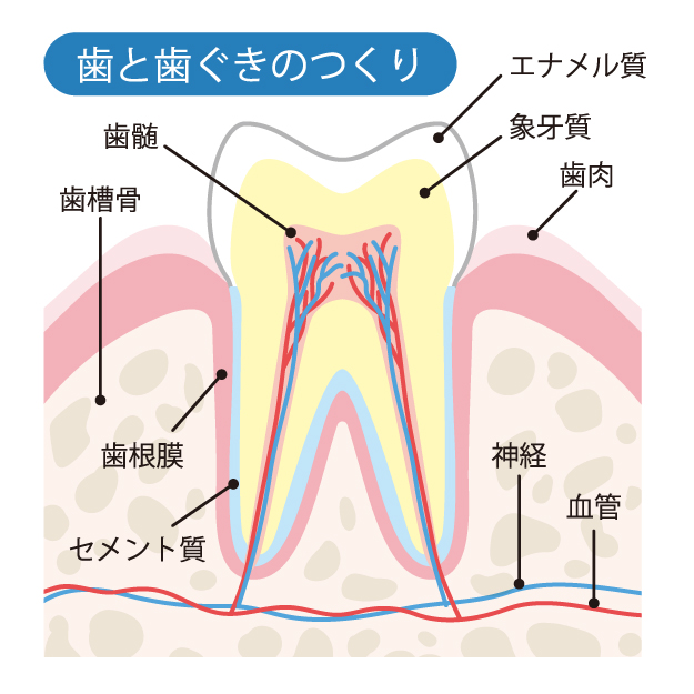 悪天候によって気圧が低くなると外からの圧力が弱くなり、歯髄腔内にある空気が膨張し、神経が刺激されて痛みを感じやすくなります。