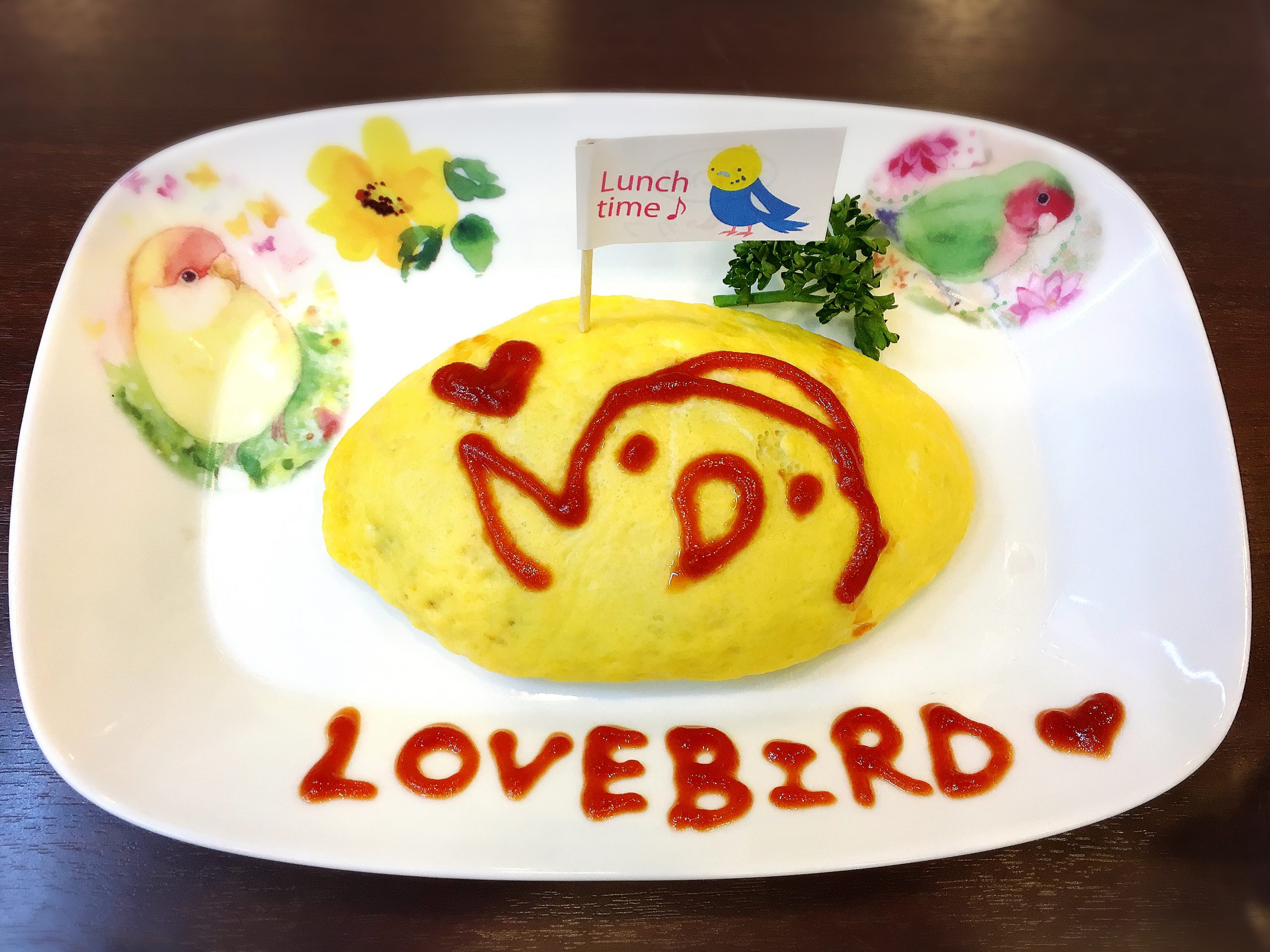 私はオムライスを食べました〜ケチャップで鳥の絵が描かれていました。