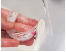動画では、実際にマウスピースを洗浄する様子や
