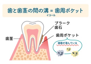 歯肉の下の溝=歯周ポケットに入り込んだ