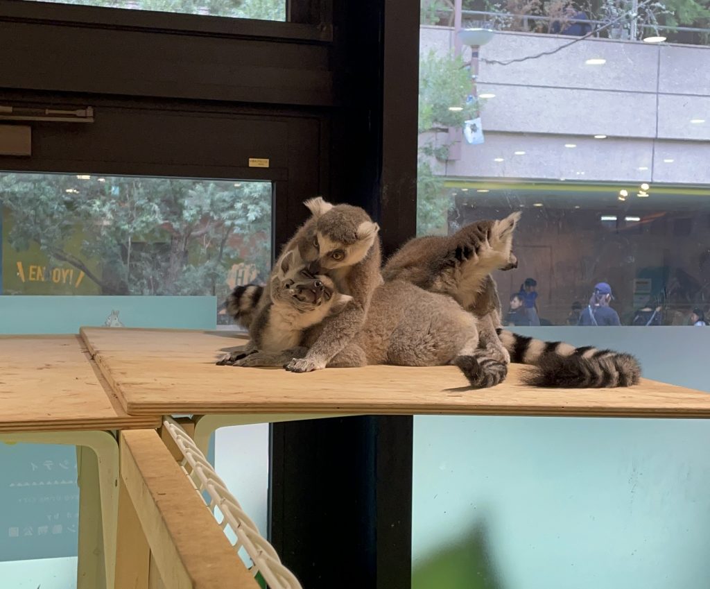 ワオキツネザルと初めて触れ合いました。