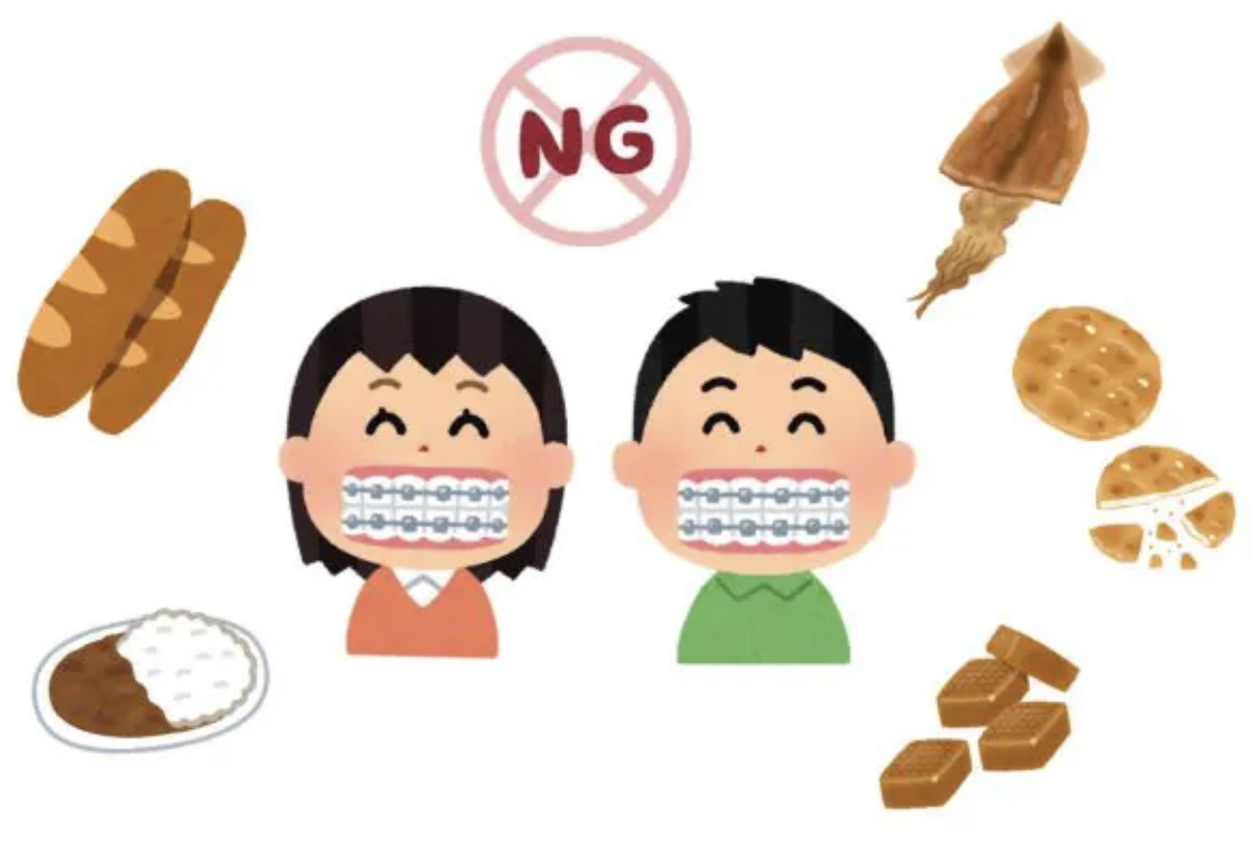 矯正治療中の食事について、絶対に食べてはいけないものはありませんが、