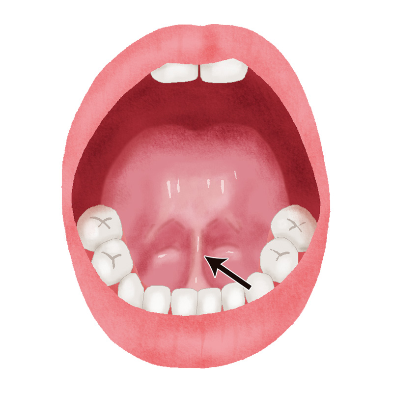 舌先をスポットにつけて、舌全体で上顎を吸い上げます。