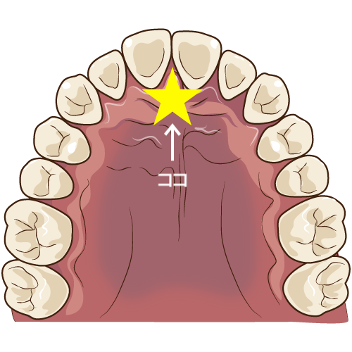 上の図(上顎)の★部分(スポット)に舌の先端を当てるようにしましょう。