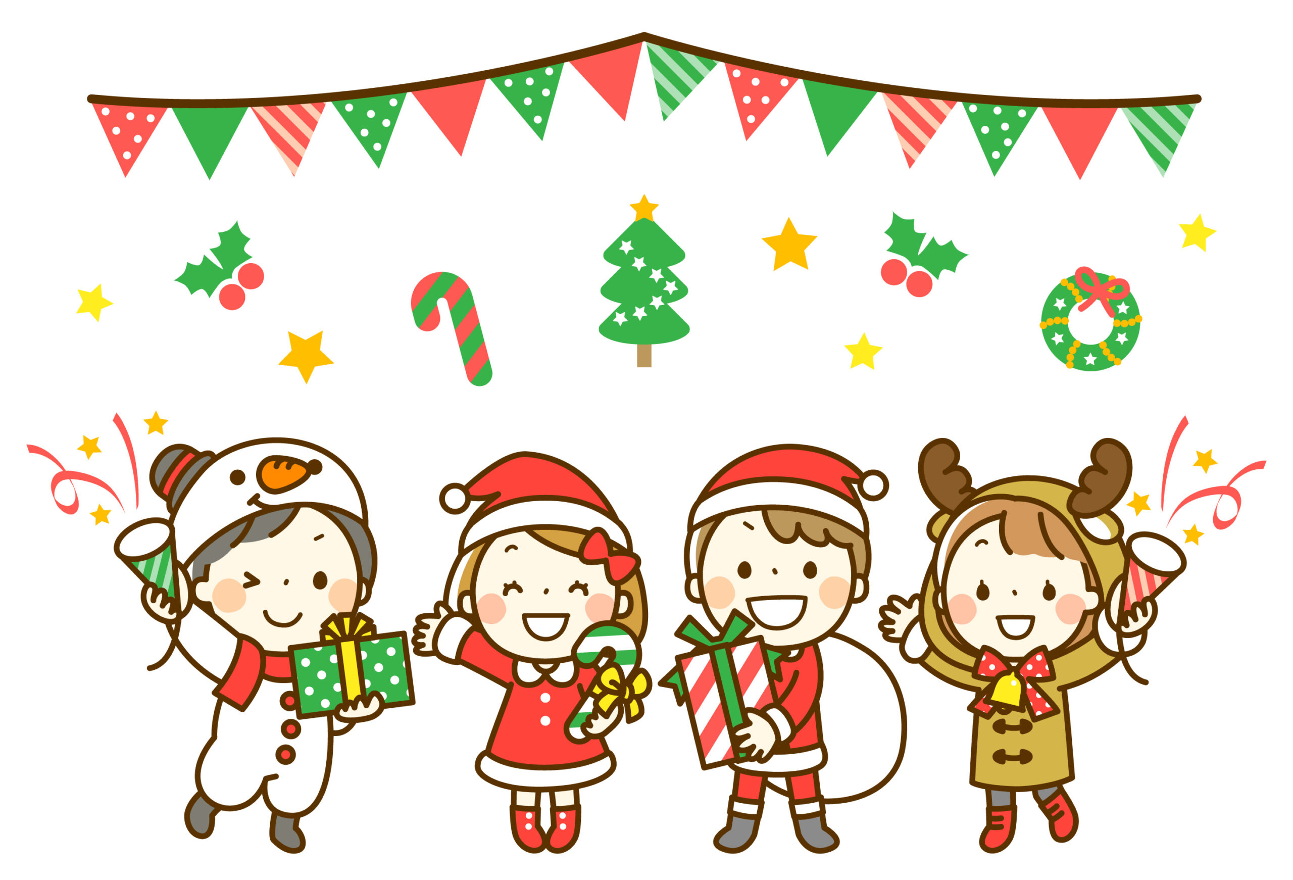 子どもたちは各々クリスマスのコスチュームを纏い