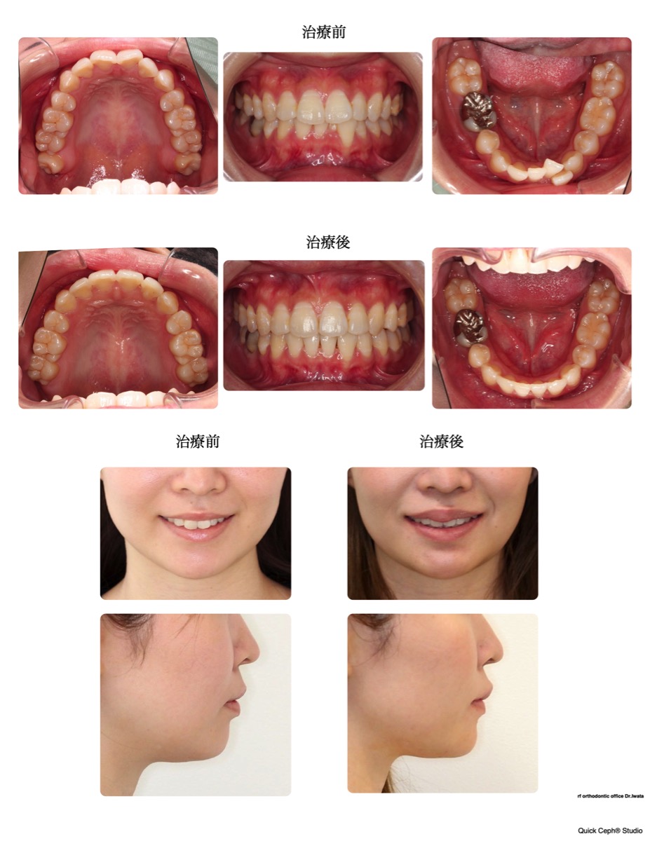 【抜歯部位】なし(過去に上下顎両側第一小臼歯抜歯済み)