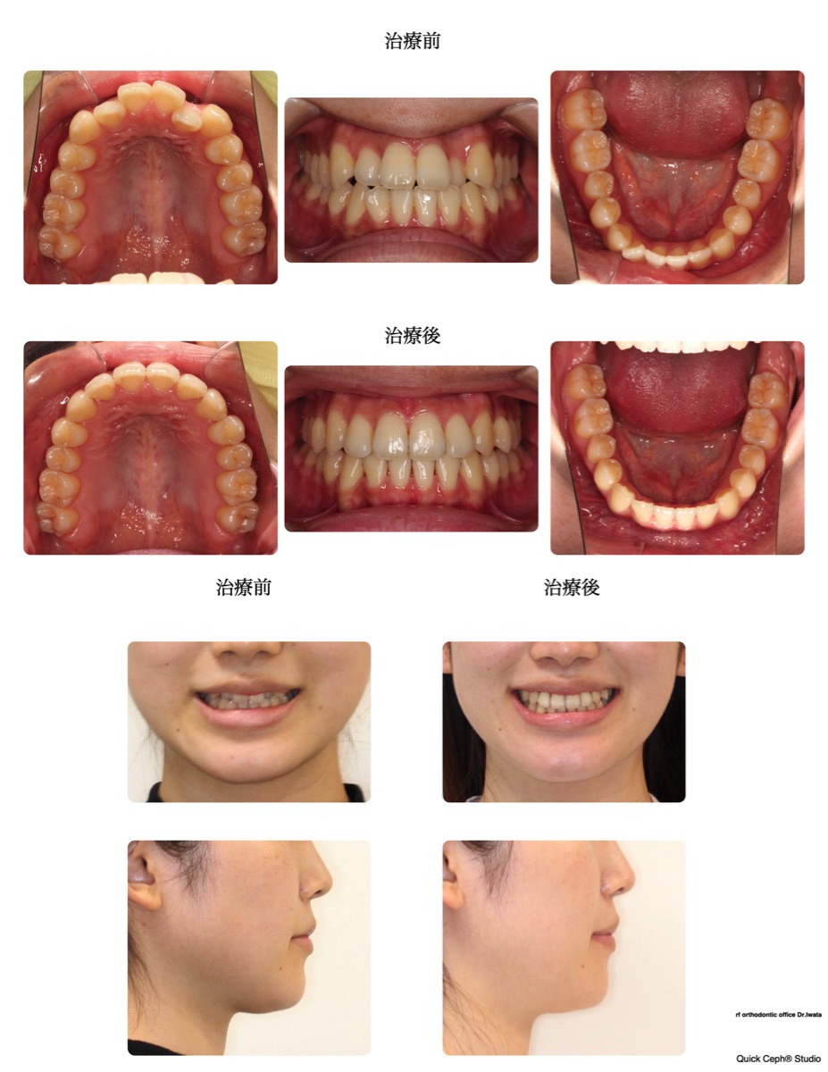 【抜歯部位】なし(過去に上下顎両側第一小臼歯抜歯済み)