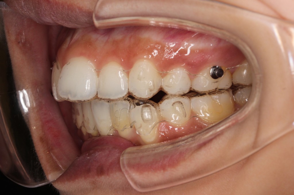 インビザラインの装着時に犬歯にもチュウィーをよく当てていましたが、チュウィーを噛む時だけ上下が咬み合い、その他の長い時間は元々の咬み合っていないままでした。