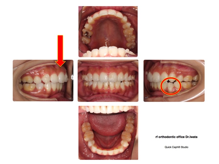 左下3番目(赤丸)と、出っ歯(赤い矢印)の変化を見てみてください