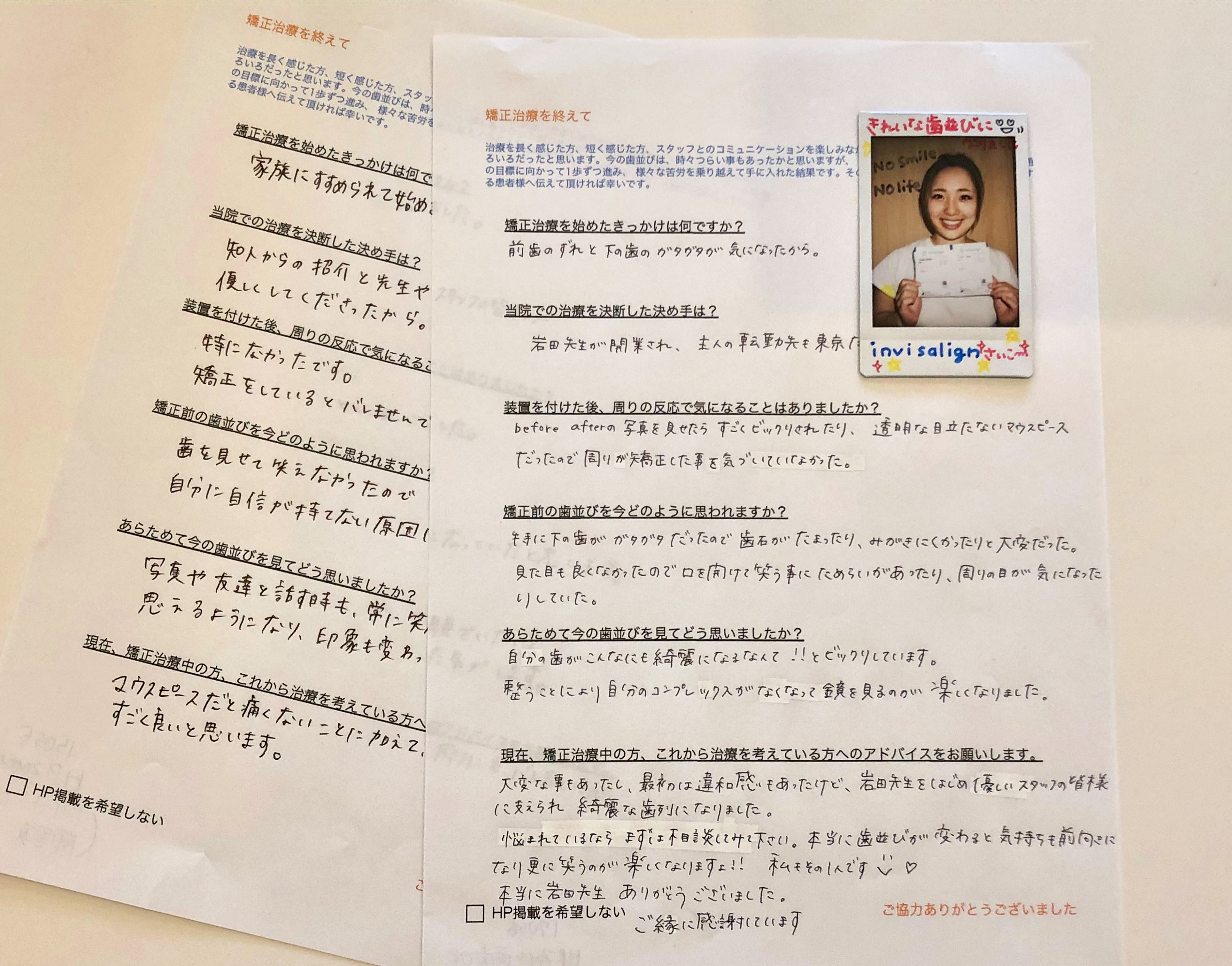 アンケートも治療後のアンケート内に掲載させていただいています。