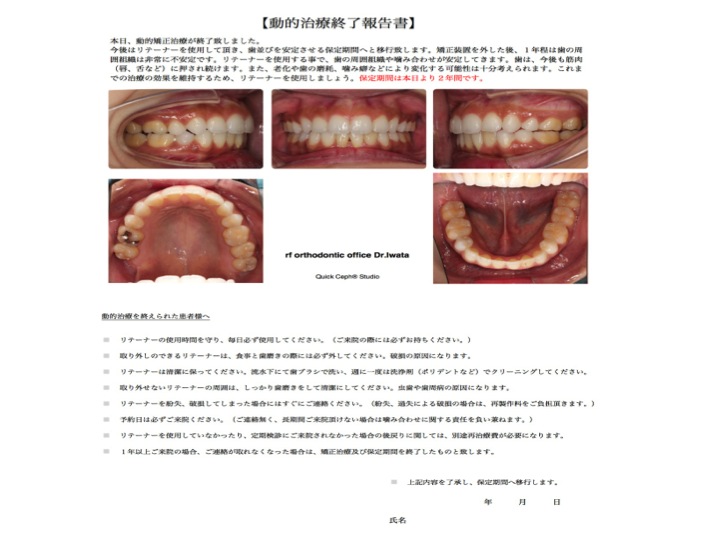 そして最後に治療が終了した(保定期間に入る)報告書をもらい
