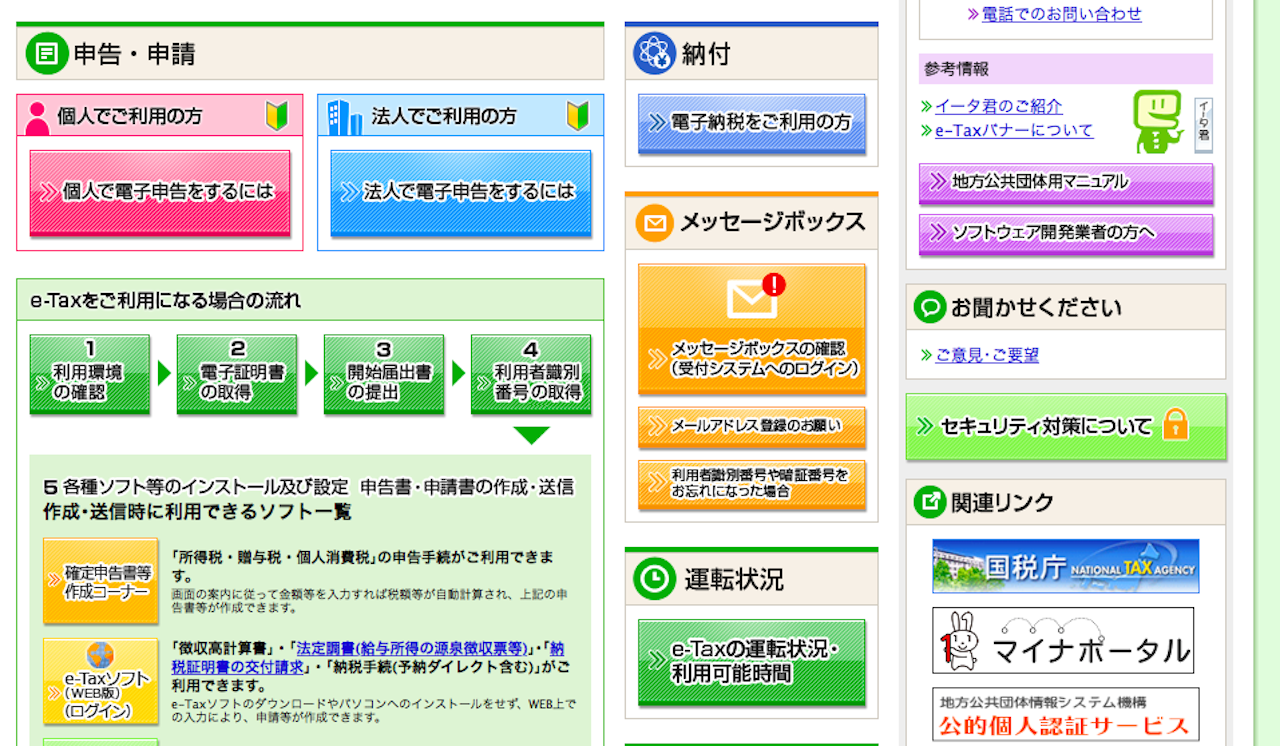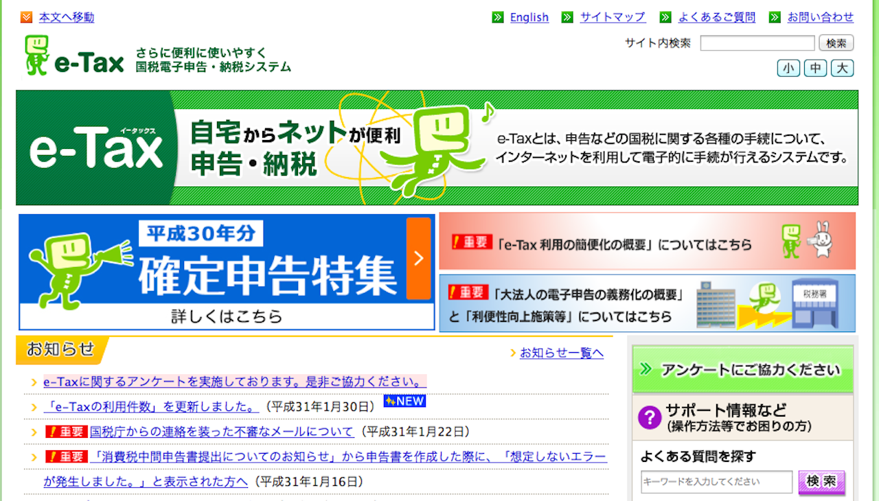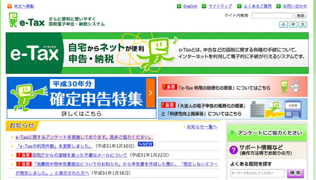e-taxのHPを開き、