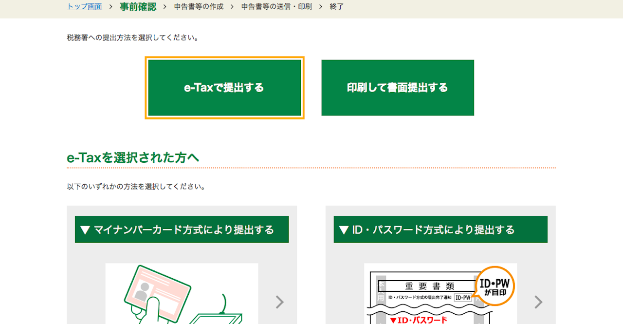 e-taxからログインして進むことができました。