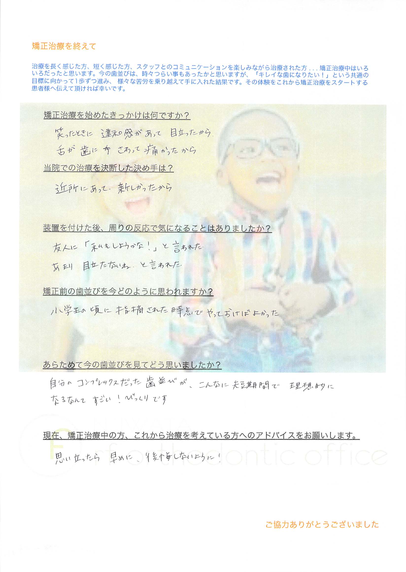 Q)現在、矯正治療中の方、これから治療を考えている方へのアドバイスをお願いします。