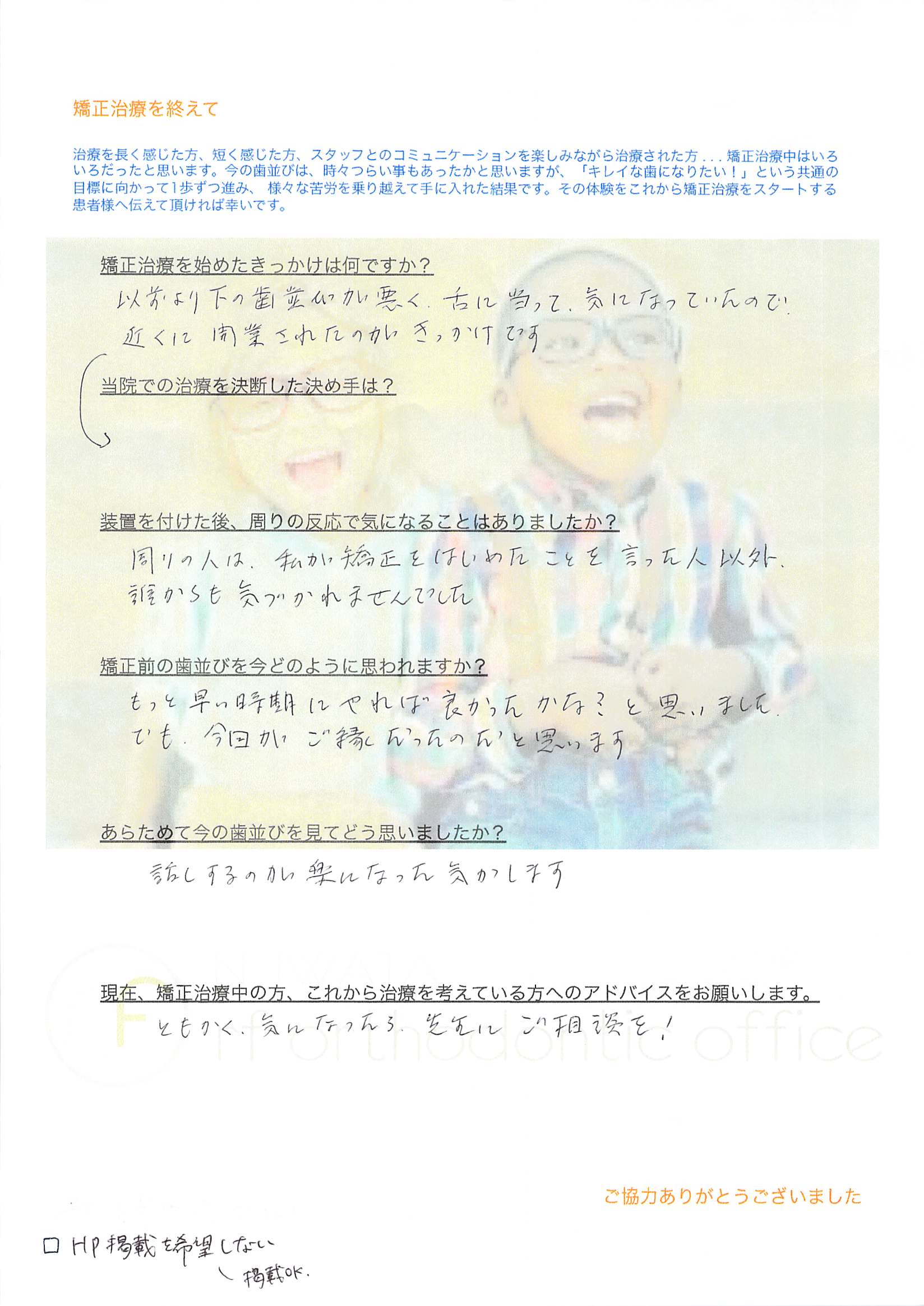 以前より下の歯並びが悪く、舌に当たって気になっていたので。