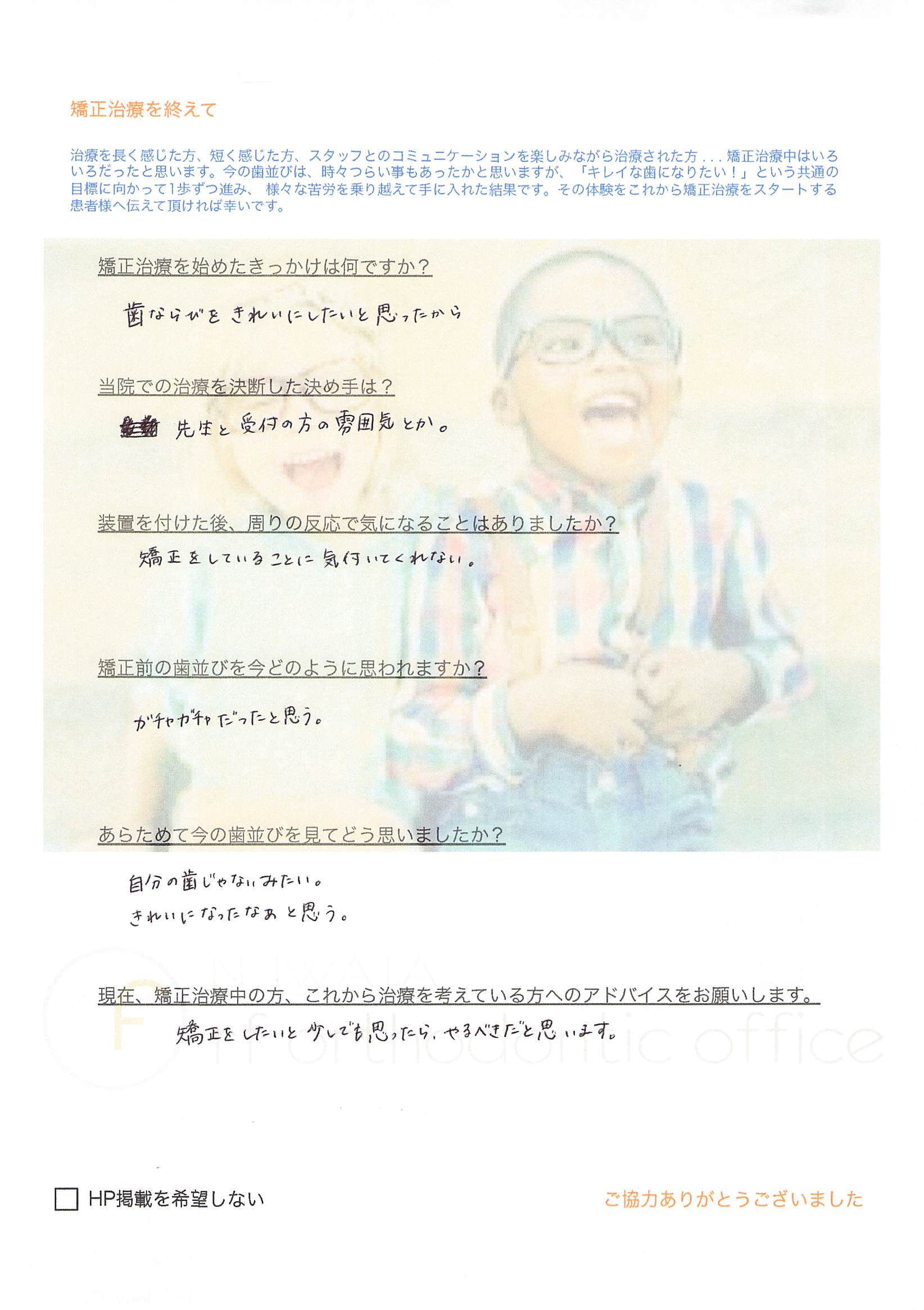 Q)現在、矯正治療中の方、これから治療を考えている方へのアドバイスをお願いします。